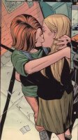 Поцелуи однополых пар фигурируют в нескольких комиксах обоих издательств, но интимные сцены, как сексуальные, так и несексуальные, за последние годы были только у DC. Комиксы Marvel с рейтингом "Для любой аудитории" не показывают сексуального влечения, и остается неясным, почему Marvel не использует рейтинг "Только для взрослых", чтобы извлечь из этого выгоду.