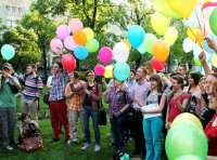 В Москве организатором "...флешмоба" выступила "Радужная ассоциация". "Около восьмидесяти человек собрались в сквере у памятника героям Плевны на Китай-городе. ...Две агитбригады прошлись по Мясницкой и Покровке, раздавая листовки, сообщающие о том, что геи и лесбиянки уже 22 года как признаны Всемирной организацией здравоохранения здоровыми людьми", - рассказывает об акции блог активистов. По их свидетельству, полиция интересовалась происходившим, сделала несколько пожеланий, но акции не препятствовала. Ближе к половине восьмого по команде лидера "Радужной ассоциации" Андрея Оболенского восемьдесят разноцветных шаров улетели в небо. А активисты, многие из них, отправились на Кудринскую площадь, где продолжаются "народные гулянья", изгнанные накануне с Чистых прудов.