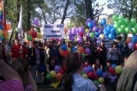 В Саратове на одну из центральных площадей города, несмотря на угрозы националистов и клерикалов, пришли несколько активистов, в основном - девушки. Националисты попытались испортить праздник. Они уничтожили шарики. Участники акции не пострадали.