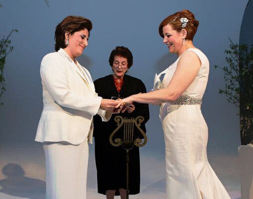 Церемония состоялась в районе Челси, ее гостями стали видные представители политикума, включая губернатора штата Нью-Йорк Эндрю Куомо (Andrew Cuomo), сенатора, представляющего этот штат, Кирстен Джиллибренд (Kirsten Gillibrand), а также мэра города Нью-Йорк Майкла Блумберга (Michael Bloomberg). Бракосочетание провела Джудит Кайе, бывшая старшая судья штата.