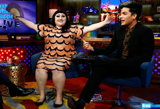 На американском кабельном канале Bravo выходит программа "Watch What Happens", гостями которой стали на прошлой неделе двое популярных исполнителей, не скрывающих своей гомосексуальности. Это Адам Ламберт (Adam Lambert) и Бет Дитто (Beth Ditto), солистка группы The Gossip. Оба артиста выпустили недавно альбомы: новая пластинка группы Бет называется "A Joyful Noise". Диск Ламберта "Trespassing" ("Нарушая границы") оправдал свое имя, поскольку благодаря этому альбому Ламберт в очередной раз "нарушил границы" и вошел в историю. Как мы уже сообщали, он стал первым в мире открытым геем, чей диск дебютировал на первой позиции престижнейшего чата Billboard Top-200, оттеснив на второе его место пластинку Адель.