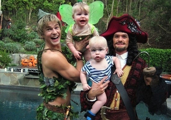 Нил Патрик Харрис с Дэвидом Барткой и детьми на Хэллоуин