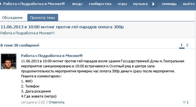 Радужные новостиЗа участие в гомофобном митинге у Госдумы можно получить 300 рублей