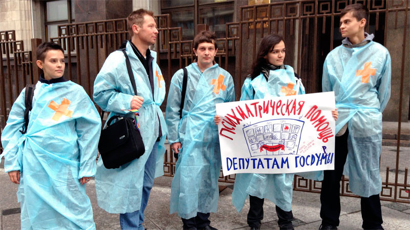 Ранее более 65000 человек подписали онлайн-петицию о проверке психического здоровья автора закона о запрете пропаганды так называемой "нетрадиционной сексуальной ориентации" среди несовершеннолетних. Московские ЛГБТ-активисты Алексей Давыдов, Роман Петрищев, Рэйда Линн и Никс Нэмени решили помочь воплотить идею в жизнь.