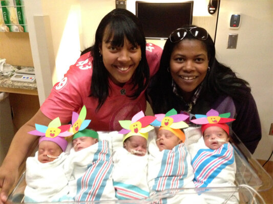 Лиз и Надя Харрис (Liz and Nadia Harris), лесбийская пара из штата Коннектикут, хотели детей с того самого момента, как четыре с половиной года тому заключили брак - в их штате это легально. Девять попыток искусственного оплодотворения не дали результатов, а потом Надя, наконец, узнала, что беременна... пятерней.