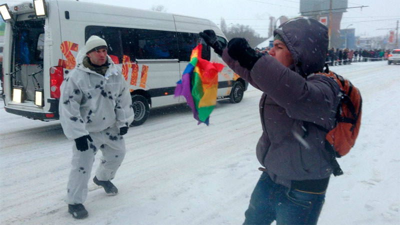 Спецслужбы, сопровождающие Олимпийский огонь, действовали мгновенно. Они буквально вынесли протестанта с проезжей части, выкрутив руки и вырвав у него радужный флаг. Гей-активист, как сообщают его соратники в социальных сетях, доставлен в отделение полиции "для выяснения обстоятельств произошедшего".