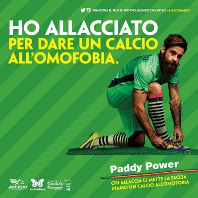 В сентябре прошлого года ирландская букмекерская контора Paddy Power запустила кампанию "Right Behind Gay Footballers" по поддержке футболистов-геев. Игрокам из разных стран мира предложили присоединиться к движению, зашнуровав бутсы специально выпущенными к акции радужными шнурками.