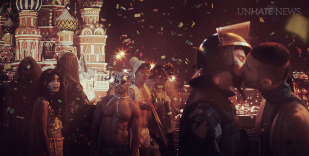 Этот клип инсценированного прайд-фестиваля, который снимали, конечно же, не на Красной площади, является частью UNHATE News, инициативы фонда UNHATE Foundation от Benetton. Инициатива дает молодым людям платформу для создания новостей, которые они хотели бы видеть, - позитивных и полных надежды.