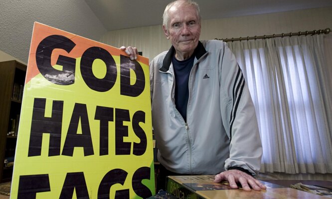 Выясняются новые подробности о скончавшемся недавно Фреде Фелпсе (Fred Phelps), основателе баптистской гомофобной церкви, которая в народе известна под названием "Бог ненавидит пид*ров!". С плакатами такого содержания фелпсиане пикетировали мероприятия, акции и панихиды, так или иначе связанные с ЛГБТ. Пусть даже косвенно.