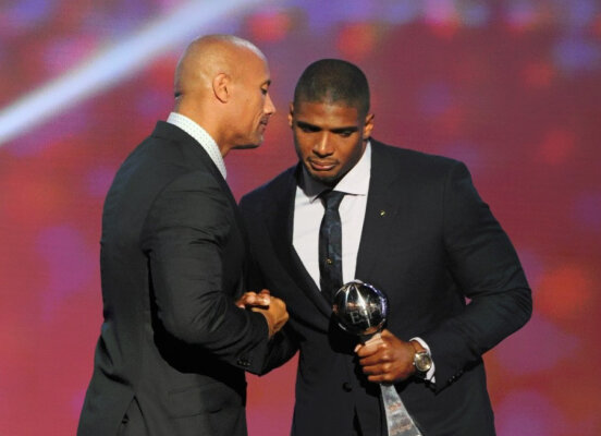 "В этом году я обрел большое количество опыта и возможность стать частью чего-то большего, чем я сам, - обратился спортсмен к гостям церемонии со сцены театра Nokia в Лос-Анджелесе. - Иногда мне казалось, что я живу посреди сильного шторма. Но сегодня вечером я здесь для того, чтобы сказать вам: уроки, извлеченные из любви и уважения, и понимания того, что нужно оставаться верным себе, усвоены мною навсегда".