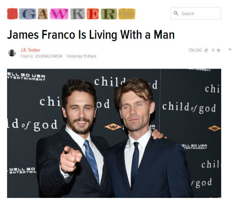Популярный американский блог Gawker.com по-своему интерпретировал статью, появившуюся в газете The New York Times, предположив, что актер Джеймс Франко и его коллега Скотт Хейз на самом деле не просто коллеги. И даже не просто друзья, а вовлечены в романтические отношения. Это предположение, естественно, тут же разлетелось по сети.