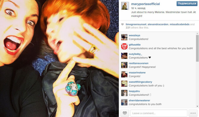 Как пишет Pinknews, Мэри удивила избранницу импровизированной свадебной вечеринкой. Пара была одной из первых, кто воспользовался новообретенным правом: после того, как в полночь в силу вступил закон, разрешающий трансформацию гражданских партнерств в брак, они явились в Вестминстерский ЗАГС. На часах была одна минута первого.