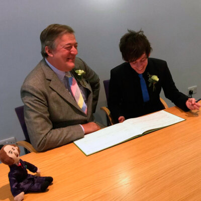 Сразу же после бракосочетания Стивен Фрай написал в своем микроблоге: "Черт возьми, мы вошли в комнату как два разных человека, поставили подписи - и вышли как единое целое. Это потрясающе".