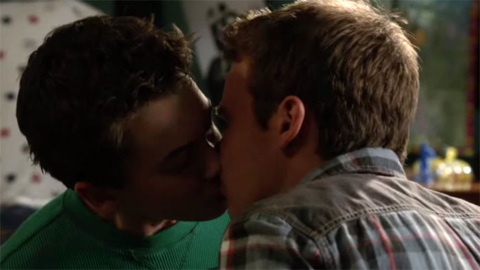 Напомним, сериал "Фостеры" рассказывает о лесбийской паре, воспитывающей нескольких детей, как своих, так и приемных. Джуд - младший сын Стеф и Лены. Его роль исполняет 14-летний Хейден Байрли (Hayden Byerly). Роль Коннора, школьного друга Джуда, который пришел ему на помощь, когда Джуд подвергся оскорблениям, играет 15-летний Гэвин МакИнтош (Gavin MacIntosh). В прошлой серии Джуд и Коннор были в кино и во время просмотра фильма взялись за руки. Джуд никак не мог понять, что это может для него значить. В новой серии мальчики впервые поцеловались. Вероятно, это был первый однополый поцелуй столь юных героев, показанный по телевидению.