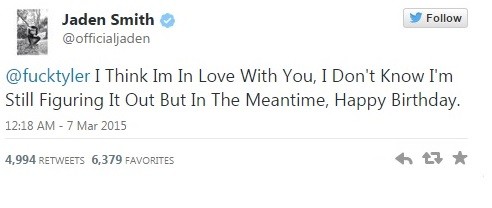 "Наконец-то это случилось! - тут же возрадовалось издание MediaTakeOut. - Сын Уилла Смита Джейден вышел из шкафа! Через Твиттер он признался в том, что он - гей".