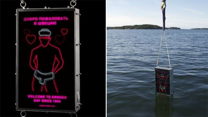По мнению шведских активистов это устройство "может отпугнуть гомофобски настроенных российских командиров подводных лодок, скрывающихся в морских глубинах".