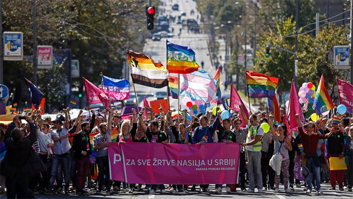В столице Сербии Белграде при повышенных мерах безопасности вчера прошло гей-шествие. Активисты шли в колоннах с лозунгами в поддержку прав человека для ЛГБТ, несли радужные флаги и разноцветные шары.