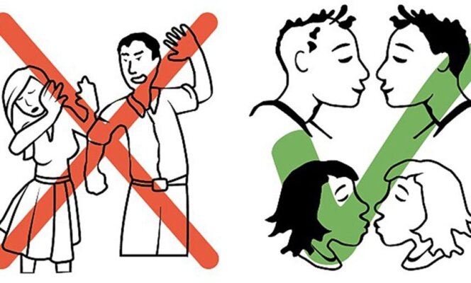 "Правила поведения", которые получили выходцы из этой мусульманской страны, включают в себя около двух десятков пунктов. Для ясности каждый из пунктов проиллюстрирован. Например, в листовке сказано, что нападать на женщин - плохо. Это правило сопровождает рисунок, на котором мужчина поднимает руку на женщину. Пиктограмма перечеркнута красным крестом.