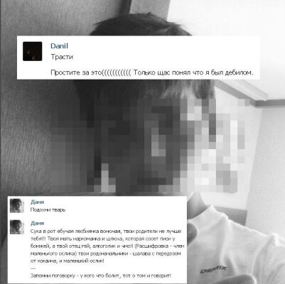 По ее словам, год назад молодой человек оставил оскорбительное сообщение полное ненормативной лексики в адрес Климовой и ее родителей. Спустя год от него пришло извинение: "Простите за это. Только сейчас понял, что я был дебилом".