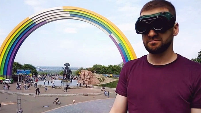 "Ни в коем случае не смотрите на радугу незащищенным глазом!" - иронизирует Зорян Кись. Чтобы защитить себя от "опасного воздействия радуги", активист предлагает гомофобам смотреть на Арку с помощью разных предметов: от пивной бутылки до сварочной каски...