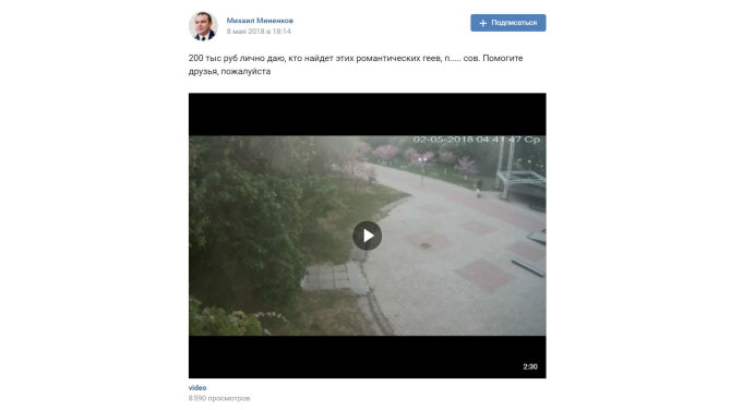 На вечер вчерашнего дня скандальная запись Миненкова по-прежнему была размещена на его странице. Видео посмотрели уже около 9 000 раз, а "лайкнули" более 300 раз.