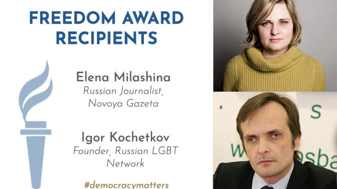 Специальный корреспондент "Новой газеты" Елена Милашина и со-основатель "Российской ЛГБТ-сети" Игорь Кочетков получили престижную награду от американской организации "Freedom House".