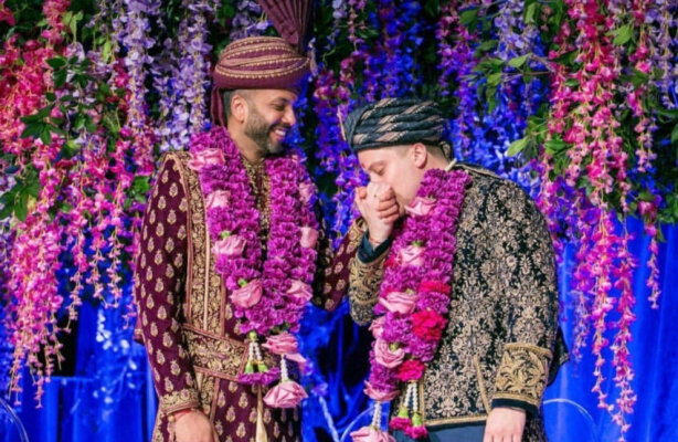Снимки свадебной церемонии интернациональной гей-пары разлетелись по Сети. Молодожены, индиец Амит и американец Мартин, решили справить две свадьбы - одну в традиционном индийском стиле, вторую - в американском.