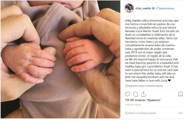 Певец Рики Мартин (Ricky Martin) стал отцом в третий раз. Радостной новостью певец поделился в своем Instagram.