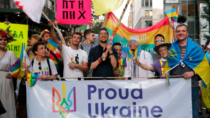 30 июня в Нью-Йорке состоялось финальное мероприятие Всемирного Прайда - гей-парад, в котором украинцы впервые приняли участие отдельной колонной. Украинские гей-активисты назвали "принципиальным" размежевание с русскоговорящими участниками парада, использующими флаги "страны-агрессора"