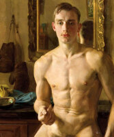 К тому же после шестидесяти Сомов неожиданно увлекся рисованием гомосексуальных эротических сценок, вроде "Обнаженных в зеркале у окна" (1934), которые хорошо продавались и мгновенно разошлись по частным парижским коллекциям. Борис с удовольствием ему позировал. В конце 1930-х Сомов создал целую серию портретов обнаженного боксера...