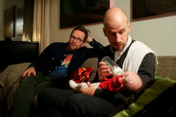 Сверре, который в январе приехал в Норвегию, родился у женщины в Техасе. Но Лассе Педерсен (Lasse Pedersen) и Эйвинд Хенриксен Шильбрей (Oivind Henriksen Skilbrei) не любят слова "суррогатная мать". В их квартире в Осло по-прежнему послеродовая атмосфера. Разогревается искусственное молоко, моются бутылочки и меняются пеленки. У Лассе декретный отпуск, и он занимается со Сверре днем, в то время как Эйвинд ходит на работу.