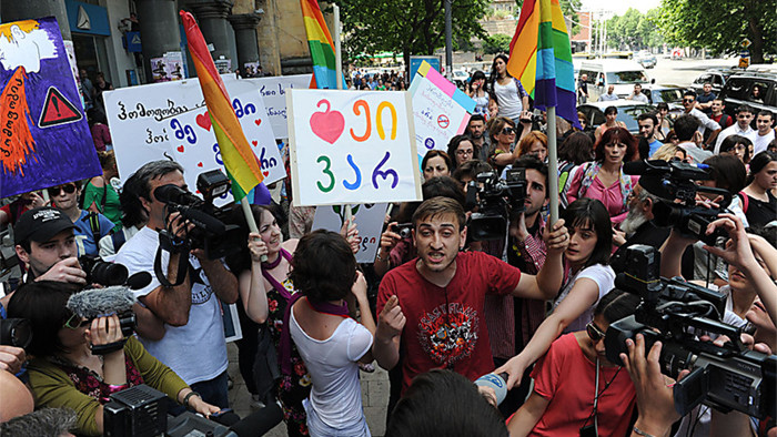 Одновременно с этим удар по интересам ЛГБТ-сообщества наносит Грузинская православная церковь. Она лоббирует свои интересы гораздо активнее - для этого у них есть и трибуны, и подготовленные слушатели. Результатом их действий становятся стычки с ЛГБТ. Самая громкая произошла в 2013 году.